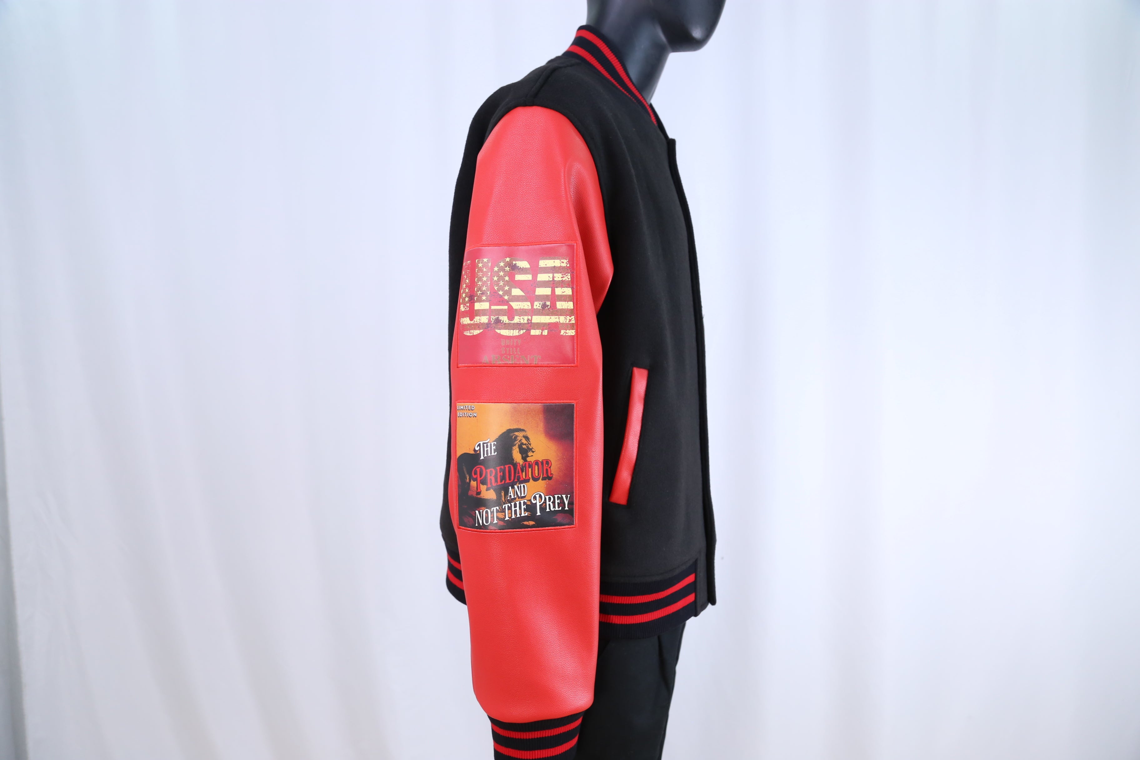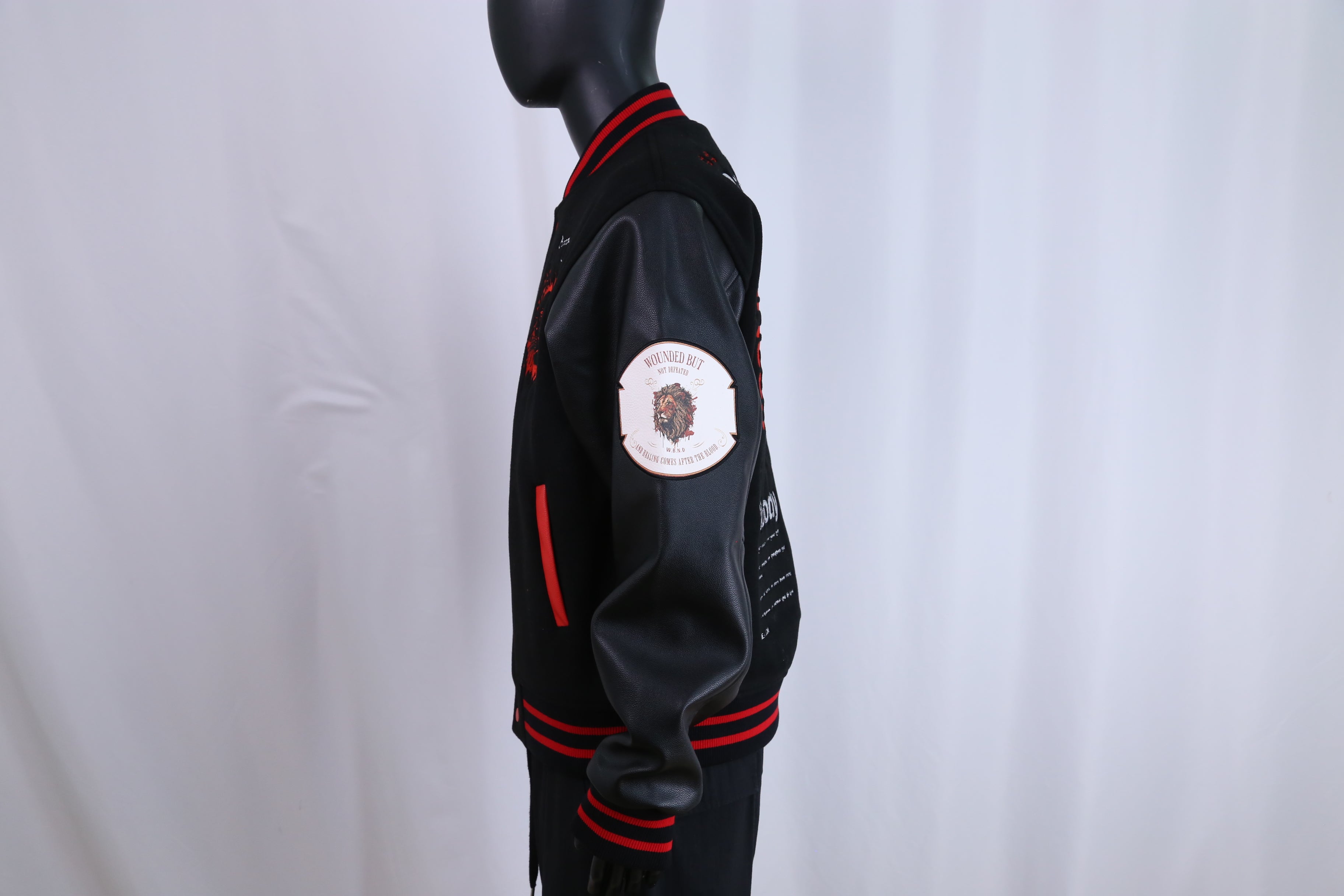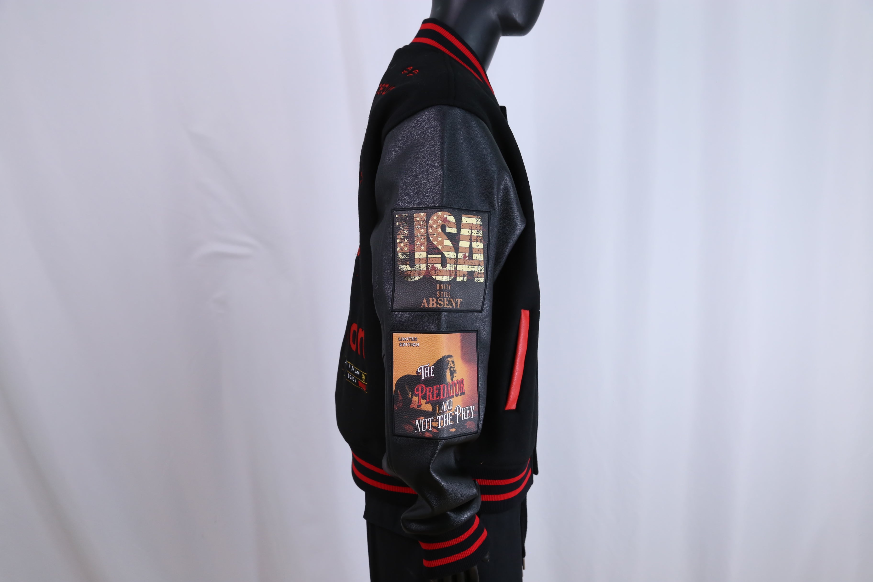 Elevate your wardrobe with a varsity jacket that speaks volumes. Constructed from premium wool with genuine leather sleeves, it's engineered for impact. Master tailors have perfected every patch and seam using only the finest fabrics, creating a piece that radiates strength and authenticity. The iconic black and red colorway captures courage and resolve—wear it as a declaration of who you truly are. Also available in All Black!